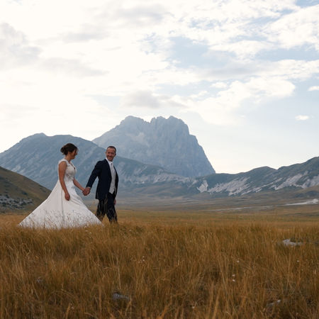 Nestled amidst mountains and meadows, Matteo and Manuela have chosen to celebrate their marriage in Abruzzo. It's not hard to understand why... Here, one breathes an air of enchantment rarely found elsewhere in Italy. The grandeur of Gran Sasso towering over the entire area, the kindness of its people, and the welcoming culture truly captivate one's heart and soul.
